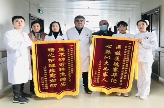 臘月二十八,年關將至,年味已濃,大家還在忙碌地節(jié)前手頭的工作。患者陳先生在家人的陪護下,手持兩面錦旗,來到了延安大學咸陽醫(yī)院心血管內(nèi)科七病區(qū),深深的鞠了一躬,并對所有的醫(yī)護人員激動的說:“是你們給我樹立了戰(zhàn)勝疾病的信心,擺脫了疾病給我?guī)淼耐纯啵裉煳铱祻统鲈海x謝你們能讓我過個好年!”