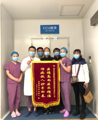 2月25日上午,李新國主任接過賀先生一家送來錦旗,上面用燙金大字寫著“醫(yī)德高尚,醫(yī)術(shù)精湛,治病救人,妙手回春”,這是一面寫滿責任和信任的錦旗,同時也是承載著患者對CCU全體醫(yī)護人員的認可與鼓勵。