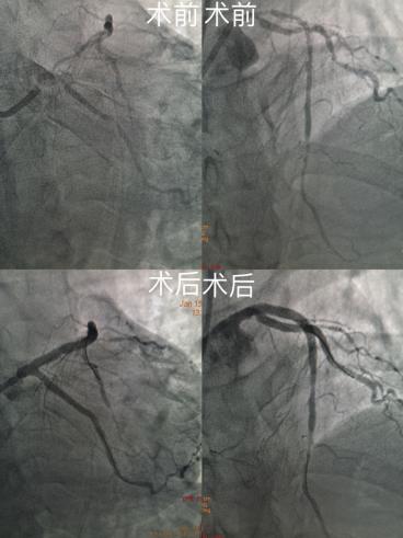 事情要從1月前開始說起,賀先生因“急性心肌梗死合并心力衰竭、心源性休克”轉(zhuǎn)入了CCU病區(qū),家屬還在回憶著當時賀先生大口喘著氣,憋得顏面發(fā)紫,全身大汗,情況非常危急,CCU的護士對這樣的場景已經(jīng)是再熟悉不過來,立即給予監(jiān)測生命體征,建立生命通路,準備呼吸機,工作在有條不紊的進行著……“血壓80/50mmHg,血氧飽和度為81%!”護士第一時間向醫(yī)生匯報了情況,有著豐富急診手術(shù)經(jīng)驗的李新國主任再次對患者病情進行了評估,目前急性廣泛前壁、右室心肌梗死合并心源性休克,冠脈造影提示,冠脈三支血管嚴重病變,左主干80%狹窄,前降支近段99%狹窄,第一對角近段90%狹窄,中段95%狹窄;前降支中段90%狹窄,遠段100%閉塞;右冠全程彌漫性病變,最重90%狹窄,房室支近段100%閉塞。雖然有外科搭橋的指征,但目前心肌梗死的急性期同時合并嚴重的心衰,外科開胸手術(shù)的難度和風險是可想而知的。介入手術(shù)開通罪犯血管可能是患者能存活下去的唯一機會,但與此同時也存在著巨大的風險,李新國主任及蔡婉君主管醫(yī)生再次與家屬溝通,告知手術(shù)的必要性及存在的風險,家屬心急如焚,一時間很難做出決定。李主任耐心的把目前患者的情況,介入手術(shù)治療的方案,及可能出現(xiàn)情況的預案,與家屬做了詳細的介紹,醫(yī)患之間良好的溝通使患者及家屬焦慮的情緒逐漸緩解,也重新樹立起戰(zhàn)勝病魔的決心,面對這位年經(jīng)、知識淵博、技術(shù)精湛的主任,家屬毅然選擇了信任,簽下了手術(shù)知情同意書,同時也把搶救患者生命的最后一線生機交付給了延安大學咸陽醫(yī)院。
