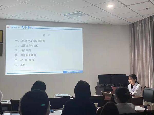 隨后,我科室蒲晨醫(yī)師和孫珍技師分別以《顱腦灌注成像臨床應用》與《顱腦ASL掃描規(guī)范》進行了展示與講解。楊教授觀看后,對我科室在顱腦灌注成像臨床應用及顱腦ASL掃描技術(shù)上提出的問題給予了解答與指導,他表示在顱腦灌注成像及掃描方面,掃描定位及血管因素是影響圖像質(zhì)量,對于我們的技術(shù)人員在業(yè)務方面有了更深層次的的學習及要求。通過本此講課,臨床及醫(yī)技科室對于顱腦灌注成像的診斷及認識有了進一步的了解。