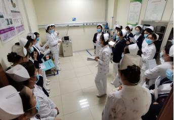 演練開始前,黨文婷總護士長就本次演練進行了簡單的介紹,并將參加觀摩的人員進行了分組:操作組、搶救組以及流程組,分別對演練過程進行針對性觀摩,胸痛中心護士長對科室的工作以及本次演練的目的作了簡單介紹。