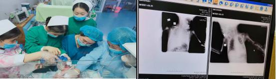 1天后,胸片結果與入院時胸片結果呈鮮明對比,白肺變成了透亮肺。大寶很是爭氣,在接下來的日子里,大寶依然表現很好,積極的配合醫生護士阿姨們。攜帶著無創輔助通氣,輸注著量身定做的營養液,躺在舒服的鳥巢里,享受著護士阿姨耐心的喂養,吸吮著精細控制的母乳量等等…,所有醫護人員密切關注著大寶的一舉一動。