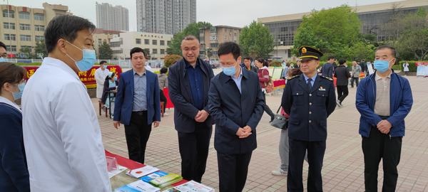 4月25日及26日我院專門組織宣傳小組醫護人員10余人分別前往咸陽市北門口鳳凰廣場及咸陽國棉二廠社區。咸陽市衛健委及衛生監督所領導前來參加宣傳周啟動儀式,親切慰問我院醫護同志,并詳細詢問了我科職業病總檢醫師淡爭國同志關于職業病判斷的相關制度規定。