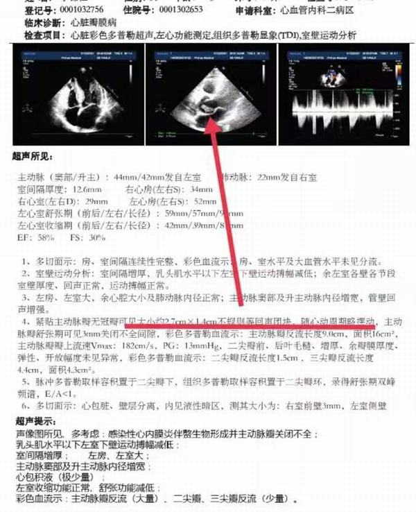 由于病情緊急危重,李先生由當地醫院急診轉入延安大學咸陽醫院,心內科請心外科會診后確診為感染心內膜炎,經過心臟彩超診斷明確診斷:“感染性心內膜炎,主動脈瓣關閉不全(大量反流),主動脈瓣贅生物形成”。可患者為高敏體質,在抗生素皮試陰性的狀態下用藥后出現嚴重的不良反應,故醫務科組織的全院心臟內科、心外科、麻醉科、藥劑科等相關科室醫生緊急聯合會診后,通過多學科聯合討論,評估風險,明確了患者的治療方案!主管醫生漆秦副主任醫師指出,患者如果不及時手術,其心臟瓣膜處的贅生物一旦脫落就會危及生命,其次主動脈瓣大量返流有突發性猝死的風險。