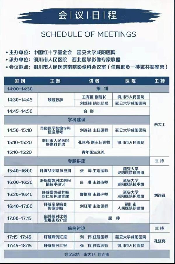 2021年7月2日由中國(guó)紅十字基金會(huì)及延安大學(xué)咸陽(yáng)醫(yī)院主辦,銅川市人民醫(yī)院及西北醫(yī)學(xué)影像專(zhuān)家聯(lián)盟承辦的《醫(yī)學(xué)影像學(xué)科建設(shè)及肝臟影像臨床應(yīng)用》為主題的會(huì)議在銅川市人民醫(yī)院南院影像科會(huì)議室(住院部負(fù)一樓磁共振室旁)順利召開(kāi),會(huì)議由銅川市人民醫(yī)院影像科朱大衛(wèi)主持,參加本次會(huì)議的有銅川市人民醫(yī)院王有恒副院長(zhǎng),銅川礦務(wù)局中心醫(yī)院黨勇主任,北京中醫(yī)藥大學(xué)孫思邈醫(yī)院劉平安主任等銅川地區(qū)影像界代表參加會(huì)議;延安大學(xué)咸陽(yáng)醫(yī)院院長(zhǎng)助理兼CT/MRI室主任劉連鋒教授帶隊(duì)診斷組張濤主治醫(yī)師及劉偉住院醫(yī)師、技術(shù)組呂琳主管技師及護(hù)理組邵艷麗主管護(hù)師團(tuán)隊(duì)共5人參加本次會(huì)議。