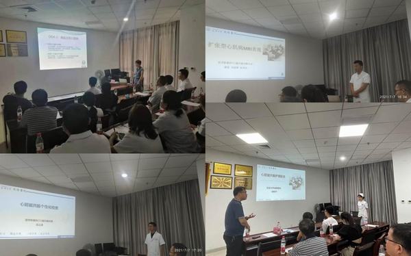 接下來,CT室蔡雷主治醫師、白江濤主管技師和劉轉寧護師分別以《擴張型心肌病的MRI表現》、《心臟磁共振個性化檢查》和《心臟磁共振護理配合》為題進行了展示與匯報;隨后劉瑩副教授與本次蒞臨會議的各位臨床和影像科室的同仁進行了溝通與交流;劉瑩副教授的蒞臨授課、指導很大程度提高了我科室在心臟疾病方面的診斷水平和信心。