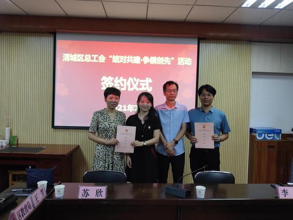 2021年7月16日上午,根據渭城區總工會對渭城區職工之家建設工作的指引,我院參加了渭城區總工會在民盟中學舉辦的“結對共建•爭模創先”活動簽約儀式。出席簽約儀式的領導有渭城區總工會、區教育局、區衛健局分管領導;咸陽中學、延安大學咸陽醫院、渭城區人民院、咸陽民盟中學4家結對共建單位工會主席、黨支部書記等領導。