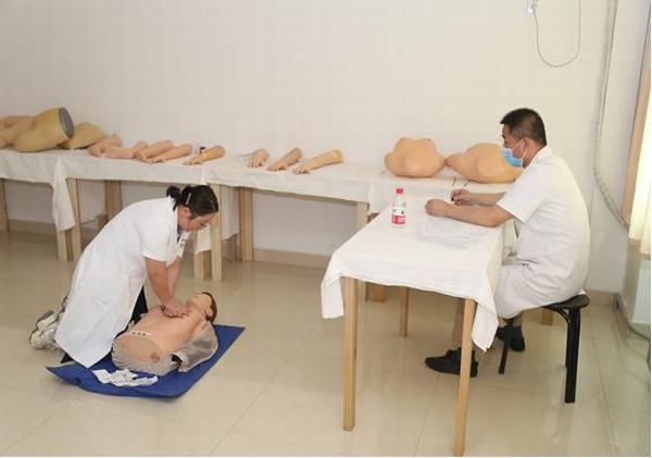 在考核現場,每位新員工心肺復蘇操作熟練,態度積極,體現了較強的應急反應能力和救援能力。考官工作認真,嚴格要求,對每一位參考的人員給予現場指導、點評,對一些操作不規范的考生,考官現場予以指導和講解,重新進行考核,直至高分通過。