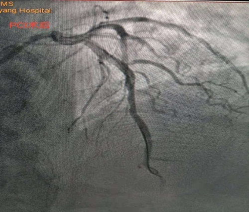 李新國主任為蒿大叔做了急診冠脈造影檢查,提示前降支近中段90%狹窄, D1開口99%狹窄,可見血栓影,結合術前心臟超聲檢查發現患者心臟腱索水平以下左室前間壁、前壁、前側壁運動搏幅減低,梗死范圍大,考慮罪犯血管為前降支近中段,在前降支近中段植入了一枚支架,開通閉塞血管。經過1個多小時的搶救,蒿大叔總算從鬼門關被救了回來了。