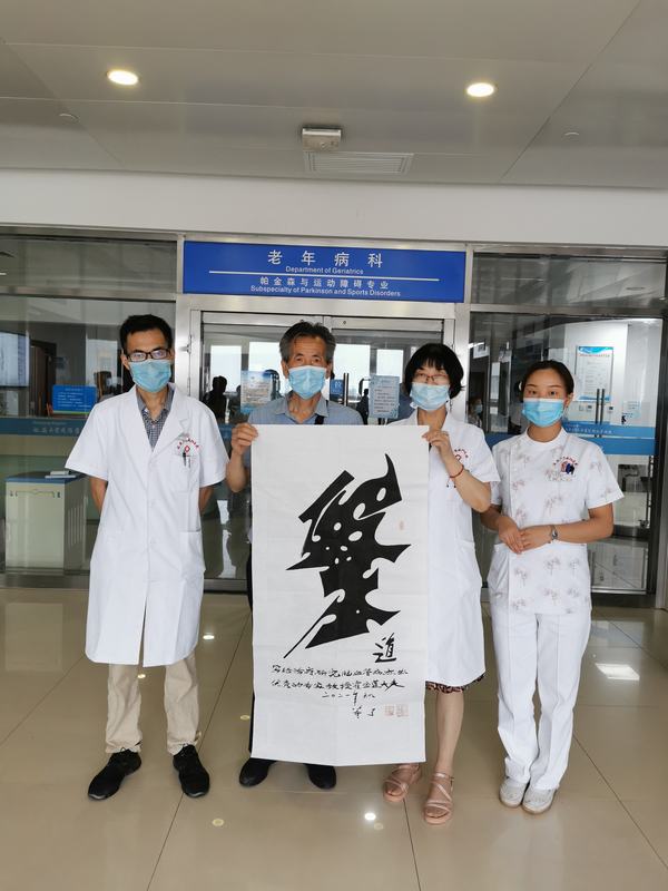 2021年8月16日下午,在醫(yī)護人員井然有序忙碌的時候,一位患者家屬走進來,拿著提袋,從里面取出一幅字畫。力透紙背的“醫(yī)道”二字,呈現(xiàn)其中。稱贊延安大學咸陽醫(yī)院老年病科霍金蓮主任醫(yī)德高尚,醫(yī)術(shù)精湛,謹慎負責,贊美之詞溢于言表。頓時,醫(yī)生辦公室變得熱鬧起來,引來好多患者及陪人欣賞字畫,老年病科的辦公室內(nèi)充滿了歡聲笑語。