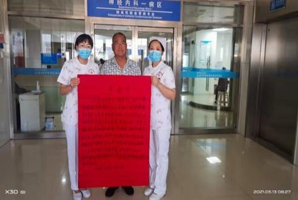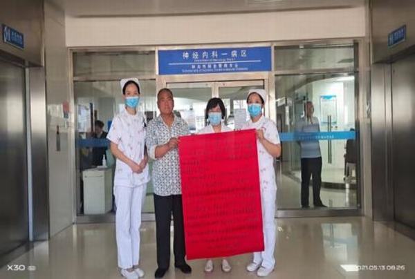 “你們辛苦了!”5月13日,延安大學咸陽醫院神經內科一病區的醫護人員剛嚴謹細致的交完班,就被一群人堵在了門口,原來是已經康復的患者和家屬送來了給醫生和護士的兩封感謝信。
