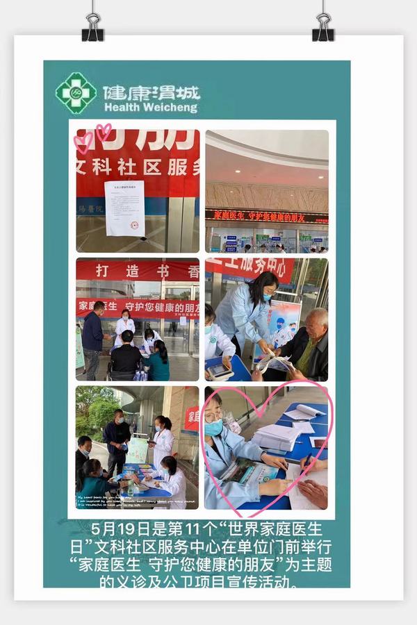 2021年5月19日是第11個(gè)“世界家庭醫(yī)生日”,為貫徹落實(shí)區(qū)衛(wèi)健局《關(guān)于開展“世界家庭醫(yī)生日”宣傳活動(dòng)的通知》精神,向轄區(qū)居民宣傳家庭醫(yī)生簽約服務(wù)政策,著力推進(jìn)家庭醫(yī)生簽約服務(wù)與疫情防控、健康扶貧、基本公共衛(wèi)生服務(wù)“三結(jié)合”,做到疫情防控和健康服務(wù)“兩手抓”、“兩手硬”。文科社區(qū)衛(wèi)生服務(wù)中心開展了以“家庭醫(yī)生 守護(hù)您健康的朋友”為主題的宣傳活動(dòng),宣傳解讀家庭醫(yī)生簽約服務(wù)有關(guān)政策,展示本地區(qū)簽約服務(wù)成效,目的是增強(qiáng)全社會(huì)對(duì)家庭醫(yī)生簽約服務(wù)的認(rèn)同感,號(hào)召全社會(huì)理解、尊重家庭醫(yī)生。