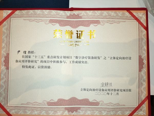 我院放療科及放療科主任尹信教授分別被評為國家重點研發計劃“立體定向放療設備應用評價研究”被評為成員單位,國家“十三五”重點研發計劃項目先進個人。