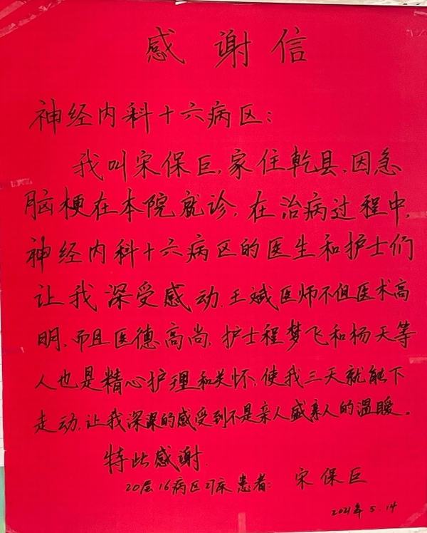 他們是入職兩年的王斌醫生、身懷六甲的程夢飛護士,病愈剛出院的楊天護士……,“情況各異”的他們有一個共同的代名詞—青年醫者,共同的初衷—醫者仁心。這不,入院的17床何叔叔,時值中年,診斷為腦梗死急性期,心理的沖擊可想而知,楊天護士用自己心理學方面的知識疏導患者,緩解病人的焦慮,王斌醫生細致入微的詢問病史,明確病因,針對性的落實治療方案,讓患者積極的面對疾病,最終得以病情好轉出院。無獨有偶,27床大爺,突發左側肢體活動不能入院,還伴有糖尿病,得病初期,大爺難以接受,脾氣暴躁,不愿與人交流,王斌醫生就在查房過程中,向患者詳細講解病情,利用案例樹立大爺醫治疾病的信心,王斌醫生根據基礎疾病制定大爺的專屬治療方案;程夢飛護士給予大爺指導糖尿病的飲食要求,大爺年紀大,記憶力減退,為了防止大爺漏監測血糖,程夢飛護士不厭其煩的提醒大爺按時監測血糖,講解血糖監測的重要性。溫情的服務讓患者如沐春風,大爺在醫護人員的細心照顧下,從一開始的生活不能自理到入院3天即可緩慢行走。他們年輕,但是工作質量卻沒有任何縮水;他們年輕,但是優質的服務卻沒有折扣;他們年輕,但是醫者的初心卻沒有任何改變。