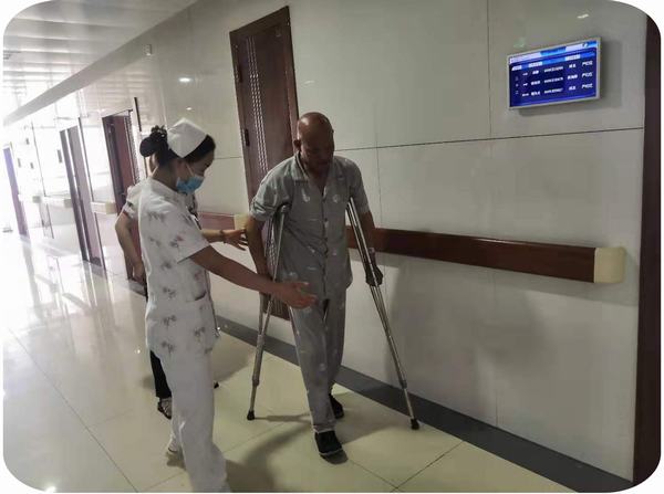 最后,護士向患者現場演示了偏癱患者如何照護,如何攙扶及發生跌倒后如何處置等。