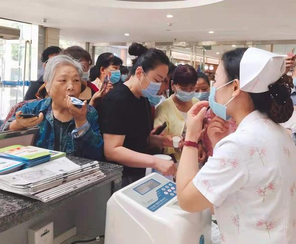 義診當(dāng)天群眾們?cè)缭绲膩?lái)到現(xiàn)場(chǎng),有序的排列好隊(duì)伍,護(hù)理團(tuán)隊(duì)熱情接待每位群眾,為他們有條不紊地進(jìn)行登記、詳細(xì)詢問(wèn)他們身體狀況,為檢測(cè)工作打好基礎(chǔ)。醫(yī)師團(tuán)隊(duì)根據(jù)檢測(cè)結(jié)果耐心的為每位群眾答疑解惑,對(duì)有需要患者給予詳細(xì)的診療方向。除此之外,還為群眾普及消化系統(tǒng)常見(jiàn)疾病的相關(guān)知識(shí)與日常健康護(hù)理小常識(shí)。此次義診活動(dòng)共為群眾免費(fèi)檢測(cè)幽門螺旋桿菌100余人次,發(fā)放各種健康宣傳資料300余份。義診現(xiàn)場(chǎng),一位老人說(shuō)“延大咸陽(yáng)醫(yī)院就是好,把關(guān)愛(ài)群眾的健康服務(wù)做到了人們的心中”。