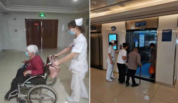 司聰聰和李佳妮護(hù)士護(hù)送患者出院