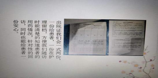 心內VIP將患者宣教做到了連續性,入院時五部曲;住院期間采用文字、健康操、視頻等進行宣教,加深了患者的記憶;出院時出院證一式兩份,一份用于患者結算,一份留科室為患者建檔案,以便隨訪時能清楚的掌握患者的用藥情況、血糖的情況、身體狀況等做到針對性的回訪,給了患者一份安心。