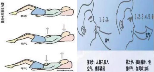 患者取舒適體位,自然放松身體,一手置于胸部,一手置于腹部,交錯放置。 先用嘴快速呼氣,再閉嘴經鼻慢慢深吸氣,腹部處的手隨之緩慢抬高。再將口唇縮成口哨狀呼氣,腹部處的手隨著緩慢呼氣而向內凹陷。 可在口唇 15 cm 處放置一點燃的蠟燭,注意呼氣流量與縮唇口形大小適宜,以燭火微傾斜但不熄滅為宜,訓練 3 ~ 5min,呼吸頻率為 8 ~ 10 次/min,呼氣與吸氣時間比為 2:1。