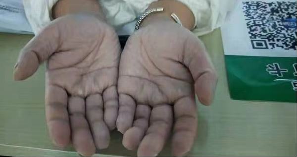 疫情防控工作24小時三班倒,當下班脫了防護服時,持續工作近八個小時的孫騰飛,衣服早已全被汗水浸透;卸下防護手套,雙手長期被汗水浸泡,整個雙手變成白色、發腫,出現裂口。