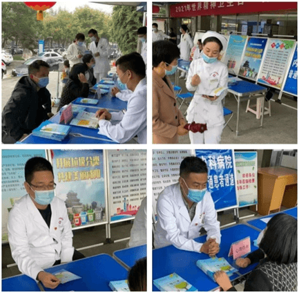 2021年10月9日,延安大學咸陽醫院精神心理科的醫護人員在胡曉科主任和薛娜護士長的帶領下,在內科樓前開展了以“青春之心靈,青春之少年”為主題的義診活動,并向過往群眾及前來就診的患者及家屬宣傳心理健康小知識、發放兒童青少年心理健康宣傳冊,免費進行咨詢和量表測量,為青少年的身心健康做了一次篩查,讓他們自己及父母更好的了解他們的身心健康。