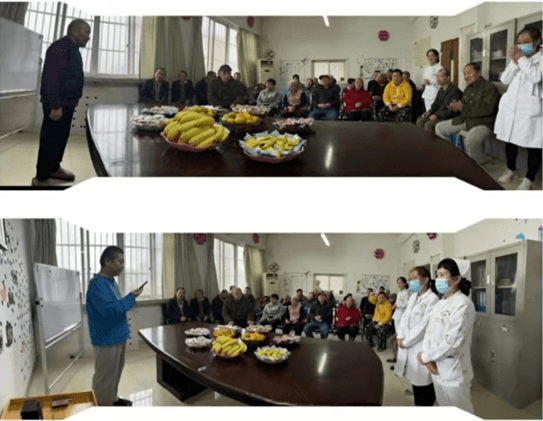 與此同時,精神科張芳芳醫生、王洋主管護師、楊園莉主管護師與患者一起互動,組織大家學習樂眠操,蝴蝶拍等技術以穩定他們情緒,使他們獲得安全,趕走焦慮、煩躁、緊張從而改善他們的睡眠。