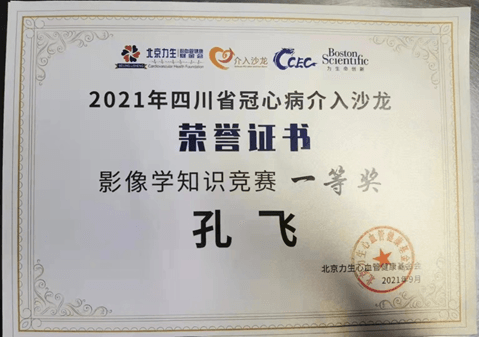 2021年9月24日,我院心血管病院介入導管室技師孔飛,在四川省冠脈介入沙龍,舉辦的腔內影像知識競賽中,憑借扎實的理論基礎、嫻熟的操作技能和臨危不懼的心理素質,在此次大賽中榮獲“影像學知識競賽一等獎”。此榮譽的獲得表明我院在腔內影像學指導下完成冠脈精準介入治療已走在全國前列。