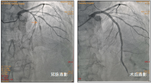 在與家屬充分溝通后,家屬堅(jiān)決的態(tài)度給了我們堅(jiān)定的信念,要不遺余力搶救老爺爺。李新國(guó)主任決定為患者開(kāi)通綠色通道,行急診PCI術(shù)。一場(chǎng)沒(méi)有硝煙的戰(zhàn)役打響了,導(dǎo)管室孔飛技師、楊婉娜主管護(hù)師、崔琳主管護(hù)師也都緊張有序的投入戰(zhàn)斗中。急診冠脈造影提示前降支近中段100%閉塞,手術(shù)過(guò)程中出現(xiàn)冠脈夾層、慢血流、血流動(dòng)力學(xué)不穩(wěn)定、心律失常等情況,在李新國(guó)主任、梁田副主任醫(yī)師及導(dǎo)管室醫(yī)務(wù)人員沉著冷靜、果斷處置中逐一化解,開(kāi)通罪犯血管,于前降支近中段植入1枚支架,將老爺爺從死亡線上挽救回來(lái)。術(shù)后轉(zhuǎn)入CCU病房,值班的李雪杰主治醫(yī)師、帕提古麗醫(yī)師對(duì)患者進(jìn)行了詳細(xì)的病史采集及查體,進(jìn)一步評(píng)估病情風(fēng)險(xiǎn),根據(jù)患者的年齡、發(fā)病特點(diǎn)精心調(diào)整治療方案。