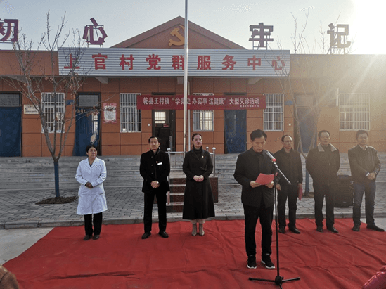 11月16日-11月20日,延安大學(xué)咸陽醫(yī)院流動醫(yī)院工作人員連續(xù)五天先后在王村鎮(zhèn)大王村、北昌村、上官村、進(jìn)行大型義診,參加義診的有乾縣紀(jì)委副書記、監(jiān)委副主任王亞軍、乾縣衛(wèi)建局副局長任兆國、王村鎮(zhèn)黨委書記王小剛、副書記黃偉、延安大學(xué)咸陽醫(yī)院院長張海濤、流動醫(yī)院院長趙莉、流動醫(yī)院行政副院長張軍強(qiáng)、業(yè)務(wù)副院長王梅芳、宣傳部科長槐新國和相關(guān)村干部以及1000余群眾。