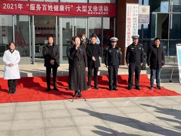 為進一步推進上級黨史學習教育活動要求,進一步提高群眾健康意識和水平,關注群眾健康需求,普及健康衛生知識,提高健康素養,11月23日-11月24日,延安大學咸陽醫院赴興平市南位鎮陳中村,舉行2021年“服務百姓健康行”大型義診活動。參加此次義診活動的有興平市南位鎮政府梁波鎮長、陳中村村民委員會書記毛亞兵、興平南市交警中隊中隊長張勝、校園中隊中隊長郝云峰、延安大學咸陽醫院流動醫院院長趙莉、流動醫院行政副院長張軍強、業務副院長王梅芳、宣傳部科長楊武衛和相關村干部及群眾300余人。