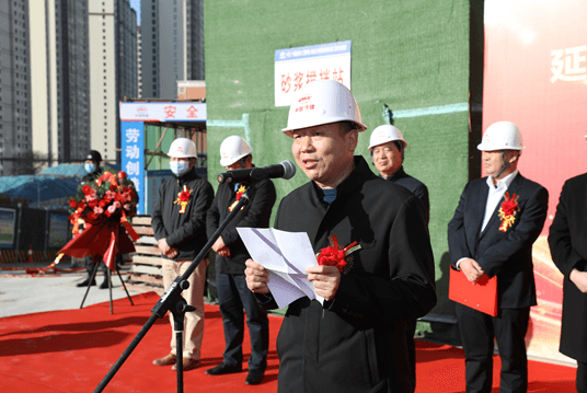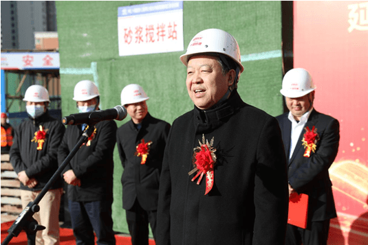代表施工單位和監理單位領導,在封頂儀式上分別作重要講話。