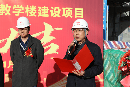 施工單位:中鐵二十局六公司第六工程有限公司副總經理宋成年為建設高質量的教學樓工程作重要講話