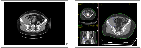 下圖為放療前病變及放療靶區