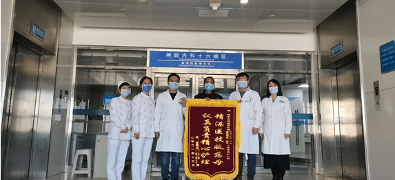 12月18日一大早,老太太的兒子滿懷感激之心送來了一面錦旗,上寫有“精湛醫技救慈母,認真負責精心護理”。這不僅是病人及家屬的一片感激之心,也是張醫生在神經內科十六病區的第一面錦旗!更是張醫生醫術醫德的最好詮釋,是神經內科16病區工作精神的最好寫照。