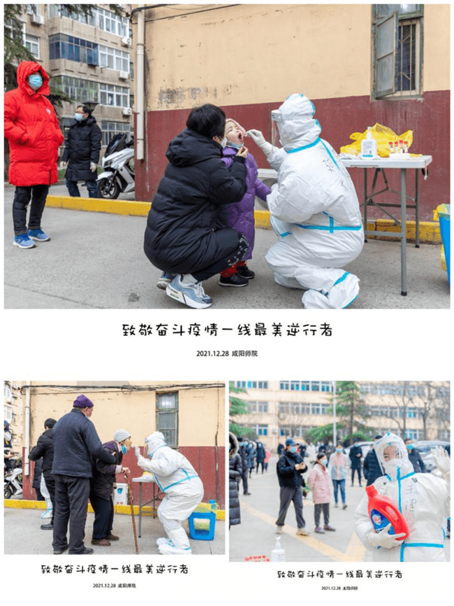 跟你們分享一些日常吧。今日在采樣點,我在整理物資的間隙,突然聽到一句:“讓孩子們先吃飯吧,從早上到現在了,特別辛苦的,一口飯沒吃呢”!我聞聲抬頭,是位老奶奶。隨即排隊的人也在附和:“對呀,先吃飯吧”。她們絲毫不在乎自己已經排了很長時間的隊,我心里瞬間一股暖流涌上心頭,雖然只是一句很平淡的話,卻是整個冬日里最暖心的愛。在我們采樣結束脫下防護服時,聽到群眾略帶心疼的感嘆:“竟然都是一群小丫頭呀”!像這樣的事情還有很多:有在采完核酸對我們敬禮的學生,有送我們自己親手繪制的“加油“”圖畫,有咿呀學語的小朋友生澀的道謝,有耋耄老人泛著淚花抱著自制暖手瓶送給我們取暖的……在這個冬天,大家相互溫暖著。