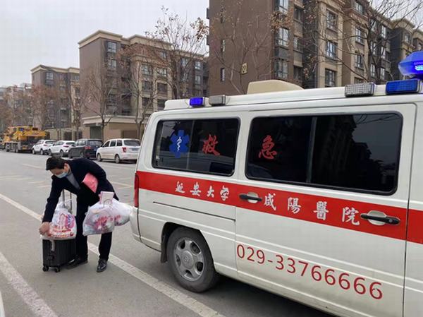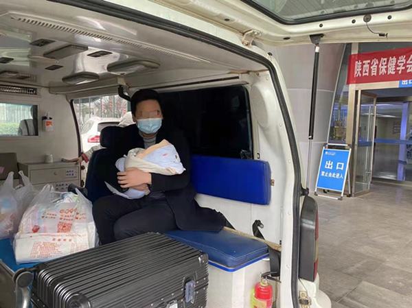出院前一天,宣傳部袁騰科長了解到由于疫情期間好多地區防疫管控,產婦無法順利返家時,第一時間與院方聯系,于2022年1月7日由延安大學咸陽醫院救護組專車送母女平安回家。