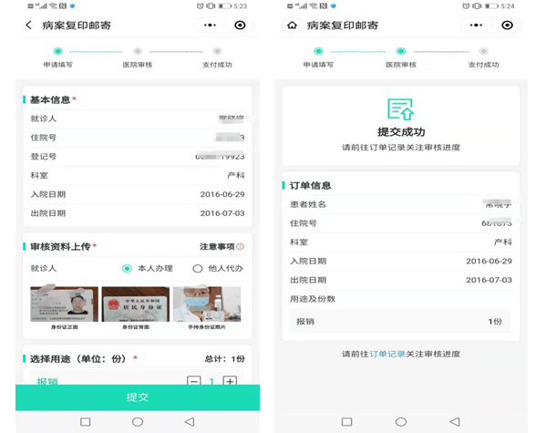 延安大學(xué)咸陽醫(yī)院互聯(lián)網(wǎng)醫(yī)院病案郵寄服務(wù)是一套基于微信小程序的申請、審核、支付、復(fù)印、郵寄的管理系統(tǒng),也是“互聯(lián)網(wǎng)+醫(yī)療”的又一新舉措。患者進入到“延安大學(xué)咸陽醫(yī)院互聯(lián)網(wǎng)醫(yī)院”主界面后,只需在線上進行病案復(fù)印申請、微信支付、物流信息查詢等簡單操作,就可以獲得所需復(fù)印的病案資料,真正做到了無需排隊等待、隨時隨地申請、收費透明清晰、進度實時可查,系統(tǒng)還會通過手機短信提醒患者病案復(fù)印及快遞的進度。
