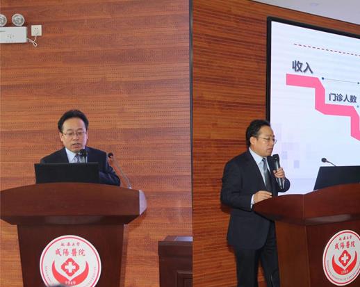 2022年2月10日下午15:00,延安大學咸陽醫院心血管病院2021年工作總結暨2022年工作部署大會在外科大樓第四學術廳召開。精誠醫療集團董事局主席李衛軍、延安大學咸陽醫院院長張海濤、科教管理中心主任韓曉芳、工會主席沙寧、副總會計師高霽、院長助理劉連鋒,部分職能部門負責人、心血管病院各科室主任、護士長、責任總醫師、護士參加了本次大會。