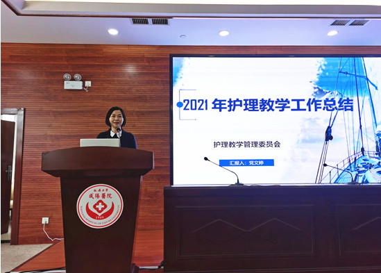 會議伊始,護理教學管理委員會主任黨文婷對各位委員的教學工作給予高度的肯定,對大家的辛苦付出表示衷心的感謝,對在場的護理實習生即將走向工作崗位表示熱烈的祝賀。接下來黨文婷主任委員對本院2021年度護理教學工作做出總結,我們始終本著“激發帶教老師的教學熱情,提高其教學能力及核心勝任力,不斷提高教學質量”為工作主線,按照年初制定的教學計劃展開工作,在大家的共同努力下,本年度各項護理教學指標均較前有所提升。