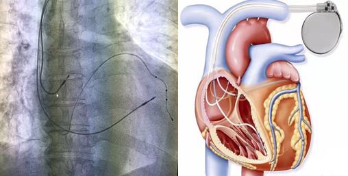 考慮到患者目前存在心功能不全,且新四聯藥物治療后效果欠佳,植入傳統雙腔起搏器完全右室起搏可能會導致心功能惡化,且2021年ESC指南也將這類患者CRT(心臟再同步化治療)適應癥由2013年ESC指南 IIa推薦升級為I類推薦。經全科醫生討論下,決定為患者行三腔起搏器植入術。