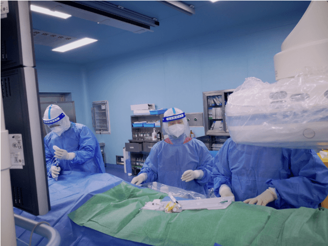 然而,3月12日晚科內(nèi)兩名冠心病患者頻繁發(fā)生心絞痛、用藥后效果十分不理想,當(dāng)下考慮為ACS,血管可能有重度狹窄,隨時(shí)病情可能會(huì)進(jìn)一步演變而危及生命。至當(dāng)前為止第一輪核酸全員均為陰性,但仍不可掉以輕心。蔡主任通過微信工作群及電話向我院張海濤院長、吳棟梁院長匯報(bào)科室情況,邀請感控辦楊竹杏主任及導(dǎo)管室曹妙云護(hù)士長等人進(jìn)行線上討論,經(jīng)過分析評估并遵循咸陽市疫情防控指揮部關(guān)于疫情防控期間積極救治不同風(fēng)險(xiǎn)區(qū)域患者的要求,一致決定開通綠色通道,嚴(yán)格按照新冠肺炎工作流程條例為患者進(jìn)行介入手術(shù)治療,確?;颊呱踩?。