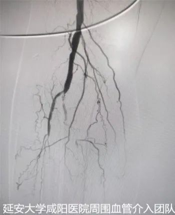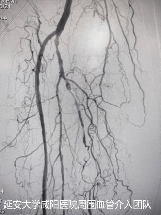 為了保肢,輾轉至我院心血管內科一病區,吳棟梁副院長帶領周圍血管病介入團隊討論、經評估及術前準備后于3月24日對患者進行下肢動脈球囊擴張成形術,術中下肢動脈造影提示膝下脛前、脛后、腓動脈動脈閉塞,血管鈣化嚴重及側支血管形成較差(股腘動脈病變TASC II分型為D型);手術難度較大,手術失敗患者直接面臨截肢,在規范化的介入操作下最終開通患肢閉塞血管,術后肢體缺血癥狀立即改善,足背動脈搏動恢復;下肢變暖了,疼痛消失了,老爺子及家屬終于舒展開了愁眉,露出了久違的笑容。