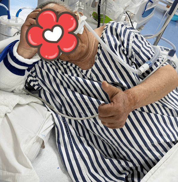 蔡醫生查房期間,患者在病床上為他和科室豎起了大拇指!家屬感激的說:“老人因慢性病多,之前去過多家醫院,這次手術能恢復的這么順利,出乎我們意料,我們全家都非常感謝科室的所有醫護人員”。