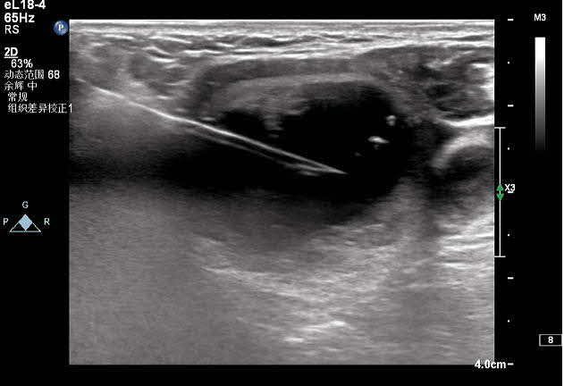 對結(jié)節(jié)的囊性部分進行穿刺抽吸+聚桂醇反復(fù)沖洗