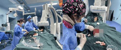 為預防肺栓塞及血栓后遺癥,緩解老人癥狀,最大程度減少瓣膜破壞;延安大學咸陽醫院周圍血管介入團隊急診為患者進行下腔靜脈濾器置入、經導管血栓清除術、接觸性導管溶栓治療。
