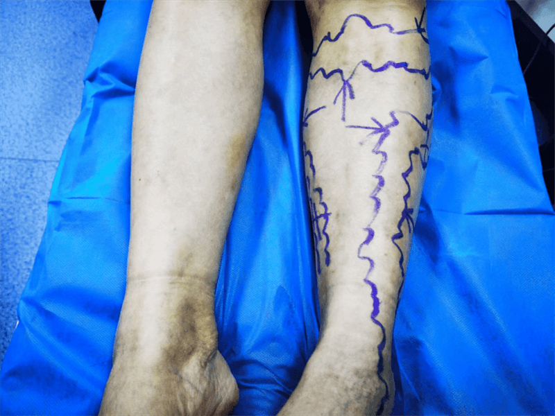 聚桂醇注射液與空氣混合配制成泡沫狀,選擇適當位置進針,將適量泡沫注入曲張靜脈,對注射區(qū)域進行按摩,使泡沫在曲張靜脈內(nèi)均勻分布。木畢,進行加壓包扎,穿彈力襪,囑咐患者下地活動半小時,留觀。最終,在團隊的共同努力下手術(shù)順利完成,患者自己下了手術(shù)臺,對我院醫(yī)師的精湛技術(shù)十分敬佩,原本懸著的心頓時放松下來,她一邊小心地在手術(shù)室里邁著步子,一邊對手術(shù)醫(yī)師表示感謝。