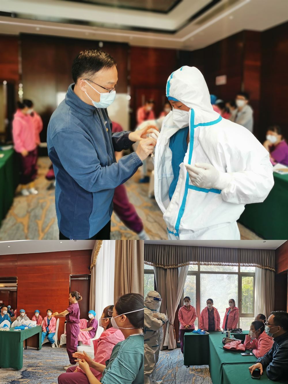 經過簡單的休整,我們隊員迅速投入到緊張有序的入艙前相關培訓,最重要的準備工作就是穿脫防護服的流程細節和相關院感知識強化,利用進艙前的緩沖時間加緊練習、培訓、考核,確保做到萬無一失。