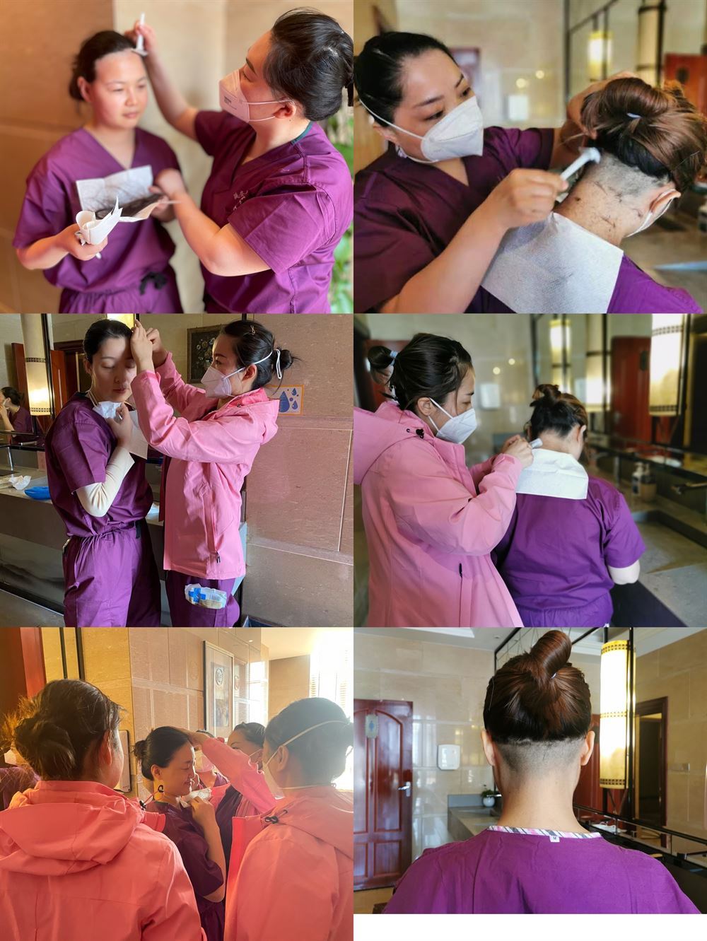 “身體發膚,受之父母”,頭發也是女孩子最珍貴、最愛惜的東西,有位隊員說:“我10月份就要結婚了,本來準備去拍婚紗照的......”護士長拿著剃須刀的手抖了抖,但還是毅然為她剃了頭發。就是這群“傻傻可愛”的女孩子們,放棄與家人團聚的時光、放棄對孩子的陪伴,不遠千里,來到這里。大家都說護士的個子都不高,身材都瘦小,此時的你還覺得我們瘦小,嬌弱嗎?