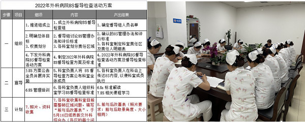 “天下大事,必做于細”,本次8S管理活動涉及外科病院各臨床科室、麻醉科/手術室、消毒供應室、靜配中心及門診采血室等22個科室,包括儀器、物資、耗材、衛生、部室安全及人員管理等各個方面,按照下發標準、科室自查自糾、督導組檢查、科室整改、再次督導的步驟進行,充分體現了PDCA循環在醫院管理中的精準、高效、協同和持續改進的特性。