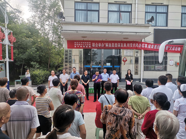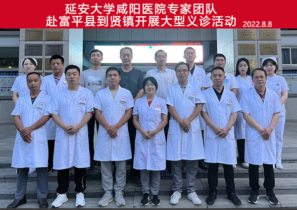 2022年8月8日,延安大學咸陽醫院聯合富平頻陽醫院、富平縣到賢鎮衛生院在到賢鎮舉辦“解放思想謀發展,轉變作風辦實事,健康惠民報鄉恩”惠民利民大型義診活動。出席義診活動的領導有富平縣衛健局副局長岳亞奇,富平縣醫保局副局長趙鵬輝,精誠醫療集團董事局主席兼延安大學咸陽醫院董事長李衛軍,延安大學校長辦公室副主任兼醫學院綜合辦公室主任高曙光,富平縣到賢鎮衛生院院長張勇飛,富平頻陽醫院院長王鵬,延安大學咸陽醫院流動醫院業務副院長張軍強,宣傳部袁政偉科長,20余名醫護人員及500余名群眾參加義診活動。